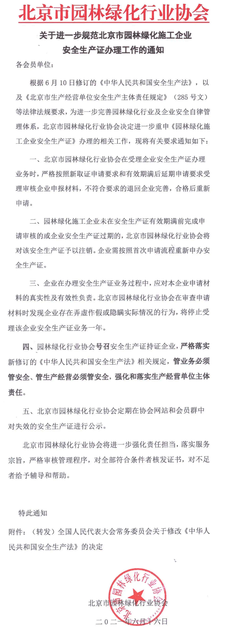 关于进一步规范北京市园林绿化施工企业安全生产证办理工作的通知